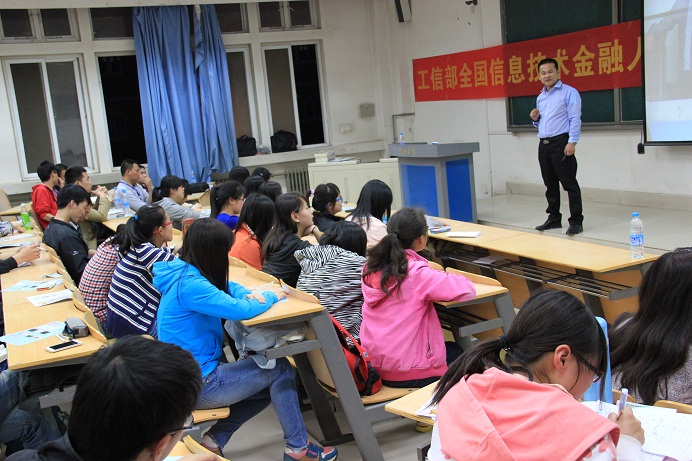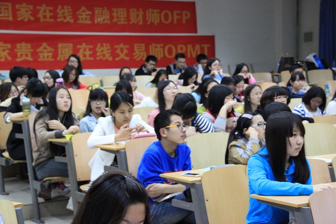 讲座的主讲人李勇老师用自身的事例做模板,用翔实而准确的数据作支撑,用生动的语言为同学们描绘出一个清晰并准确的未来。最后教育培训部的张游经理为同学们详细解答工信部全国信息技术人才培养工程“在线金融理财师(OFP)”和“贵金属在线交易师(OPMT)”培训项目的行业前景和培训考试相关疑问和优惠政策,让同学们对以后学习方向有一定的了解和认识!