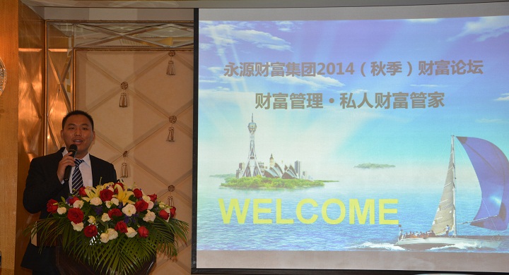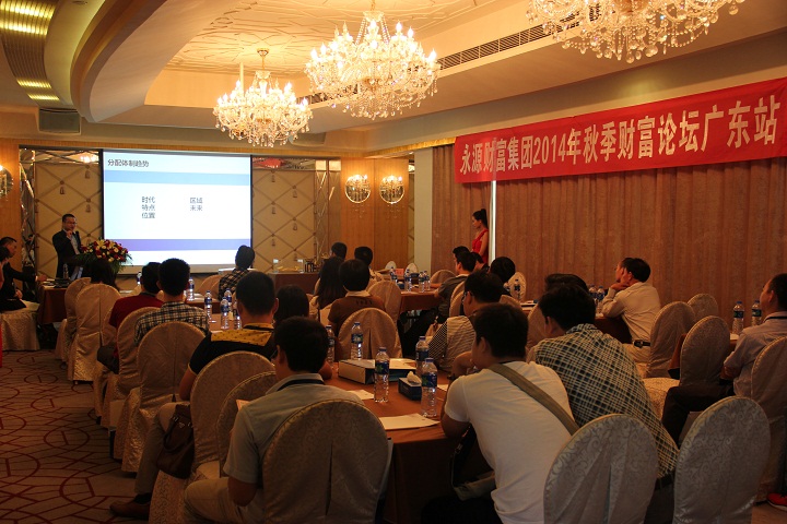 2014年10月26日,永源财富集团2014秋季财富论坛广东站在东莞富盈美爵酒店成功举办。 财富论坛的主题是“财富管理•私人财富管家”,永源财管管理中心的理财专家与众嘉宾交流了当今中国的经济现状,以及如何在当前形势下如何管理财富的重要内容,获得了与会者 的高度认同。