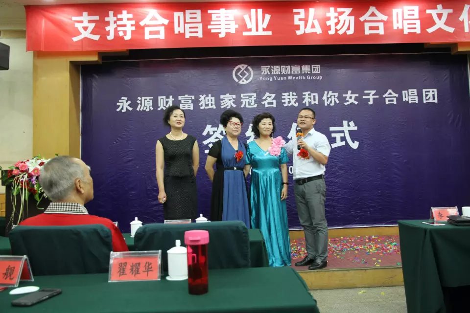永源财富集团是一家专注于财富管理的金融服务公司,本着合作双赢、互惠互利的原则与我和你女子合唱团达成合作。合作后,合唱团将获得集团各方面的丰富资源,从而促进团体的快速发展和演艺质量的进一步提升。合唱团众多的演出和比赛,也将会对永源财富起到宣传推广作用,从而提高品牌知名度和社会影响力。永源财富集团将大力支持文艺事业的发展,更好的回报社会。