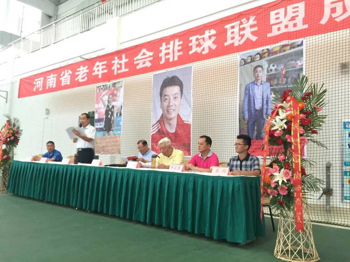 河南省老年社会排球联盟的构想源于2012年郑州市国税局气排球联赛,由河南省老年社会排球技术总监刘启谟发起,得到了中国气排球协会专业副主任王伟老师的详细指导。经过三年的筹建,最终确定了联盟的正式名称及章程,同时稳步壮大联盟规模,现在已有21支球队正式加入。今天上午在郑州市举办开幕庆典,宣告河南省老年社会排球联盟正式成立,2015年度的联赛也正式开始。
